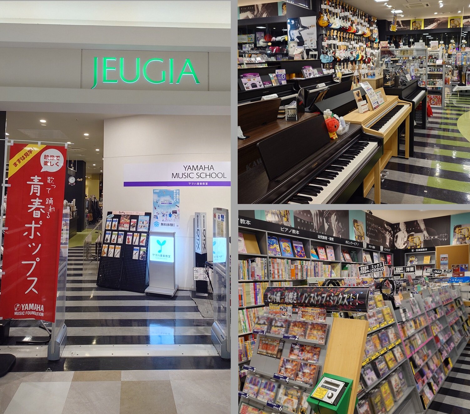 JEUGIAイオンモール久御山店は「奏でる・聴く・習う」全てに出会える音楽広場。