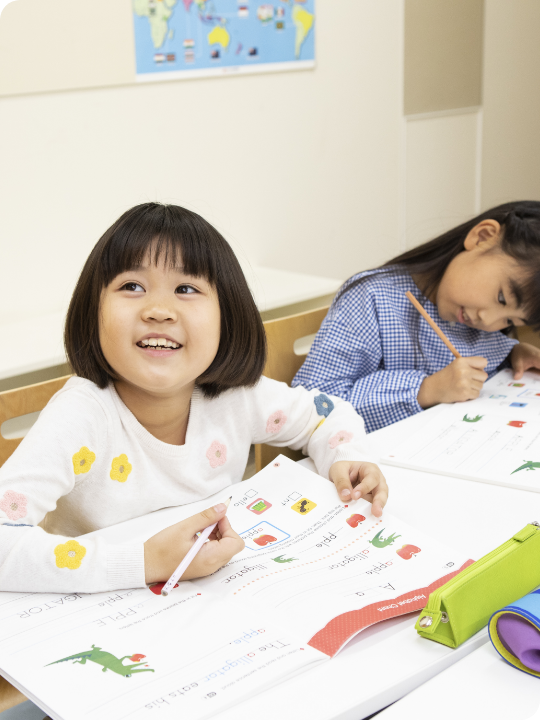 言葉の発達が目覚ましい時期。英語の基本表現や語彙を身につけ、先生や友だちとのやりとりの中で自分の言葉として応用できるようになります。また、読み書きの力も身につけていきます。