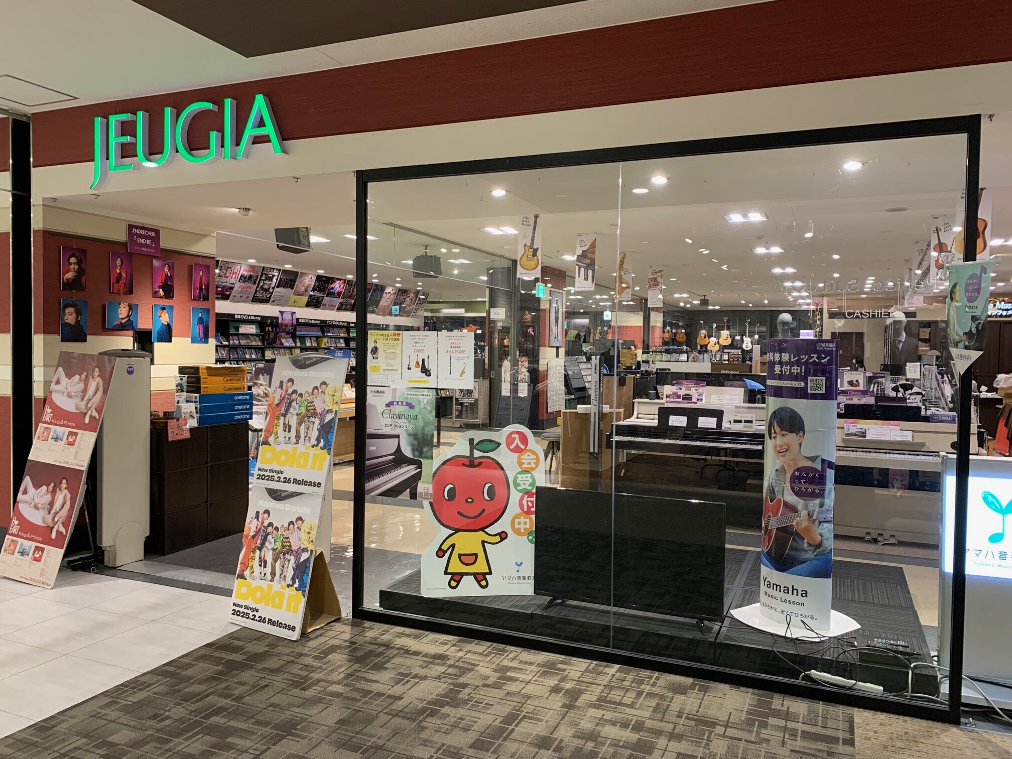 JR茨木駅より徒歩6分、モノレール宇野辺駅より徒歩8分です。 イオンモール茨木の3階専門店フロアにJEUGIAがございます。 駐車場完備なのでお車でのお越しも便利です♪ 2時間無料。お買い上げ金額、レッスン、レンタルルーム利用により駐車券サービスもございます。