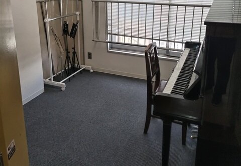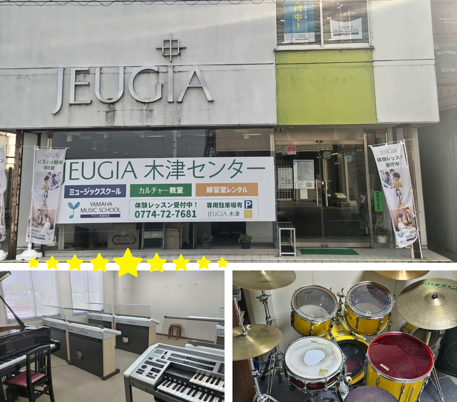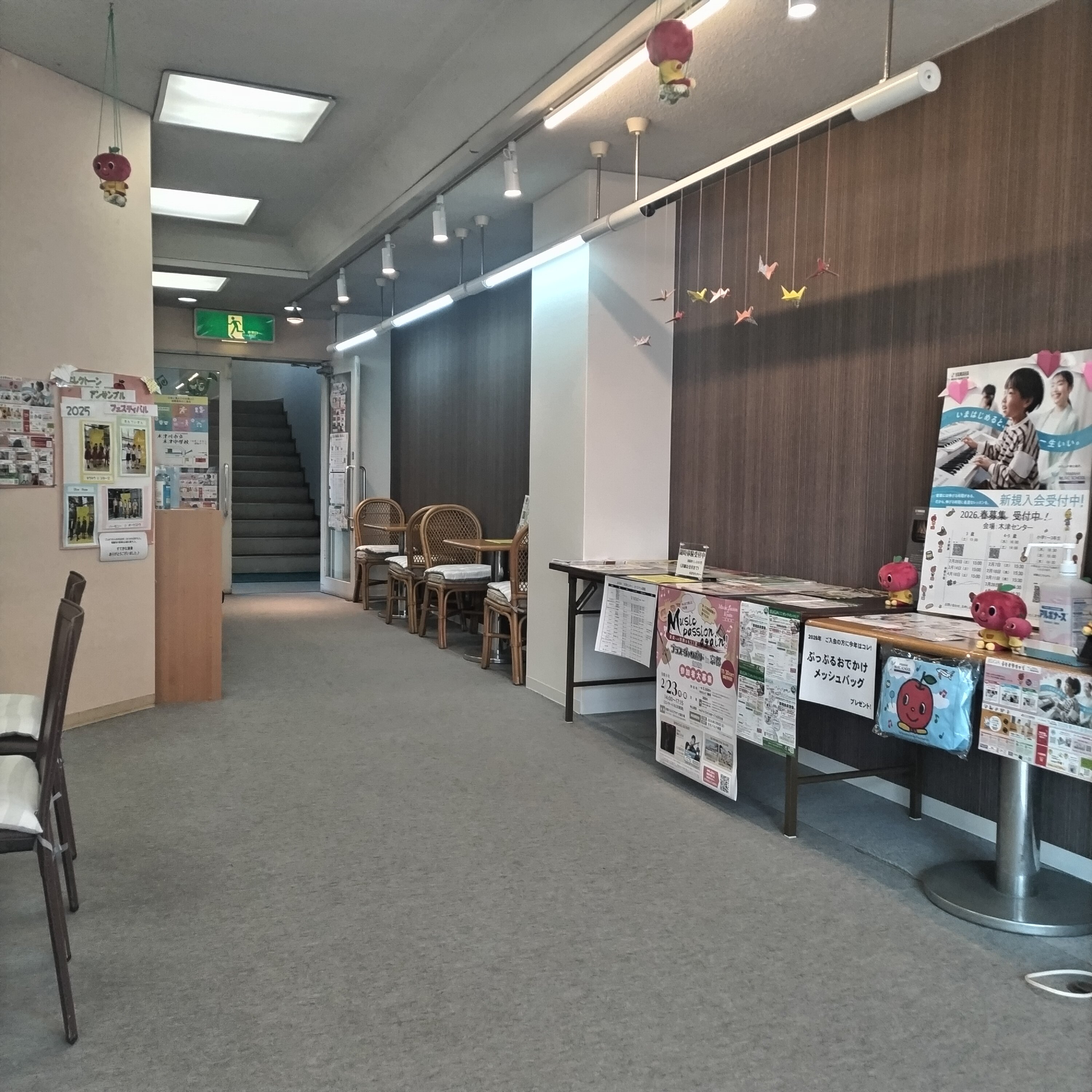 防音室からグループ室、個人室とお部屋は全部で6室!小さい建物ながら幅広くレッスンを展開させていただいております。楽しい時間をぜひ木津センターでおすごしください。