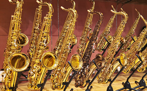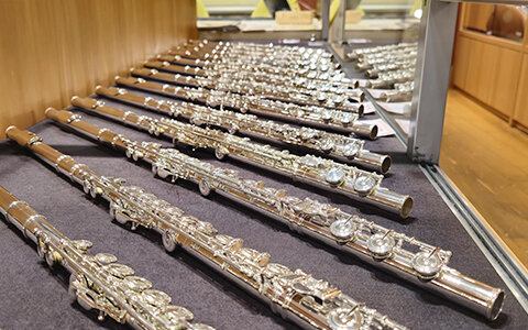 トランペットやサックス、フルートなどの管楽器からバイオリンやチェロ、コントラバスなどの弦楽器に至るまで、幅広い管弦楽器と関連小物を取り揃えております。