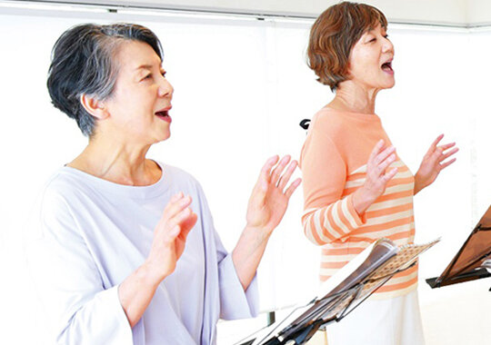 なじみのある国内外の名曲を楽しく歌います。声を出すことでストレスを解消し、肺活量や腹筋の強化も期待できます。