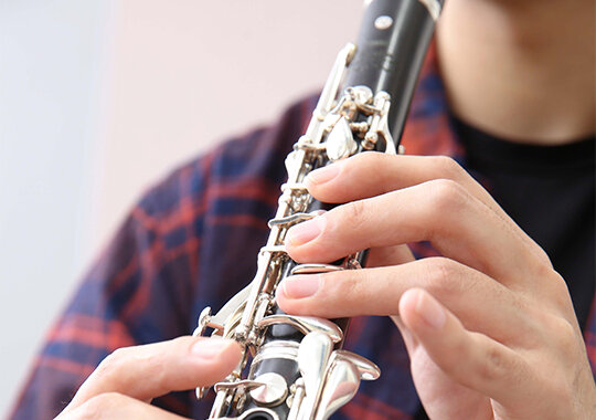 4オクターブ近い広い音域を持っているのがクラリネットの特長です。音色も多彩で、管体が木でできているため、低音ではまろやかで暖かい音、中音では柔らかな音、そして高音では華やかで明るい音を響かせます。男性の声域から、女性、そして子どもの声域までをカバーする幅広い音域と多彩な音色で、表現力豊かにメロディが奏でられます。