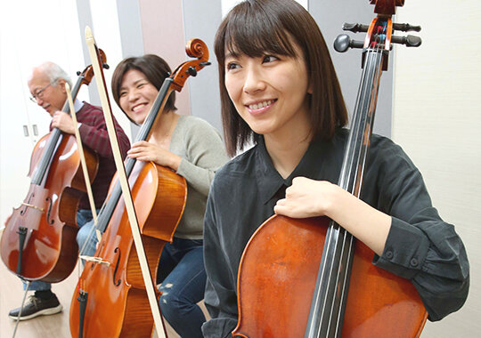 楽器を抱えるように弾くチェロは、体全体で楽器自体の豊かな響きを直接感じることができ、他の楽器にはない独特な楽器との一体感が味わえます。